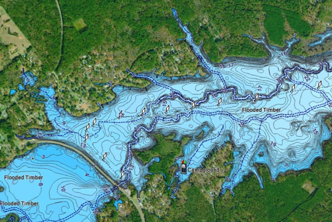 Up to 0.5 m contours provide a detailed and clear view of bottom structure for improved fishing charts and enhanced detail in swamps, canals and port plans.