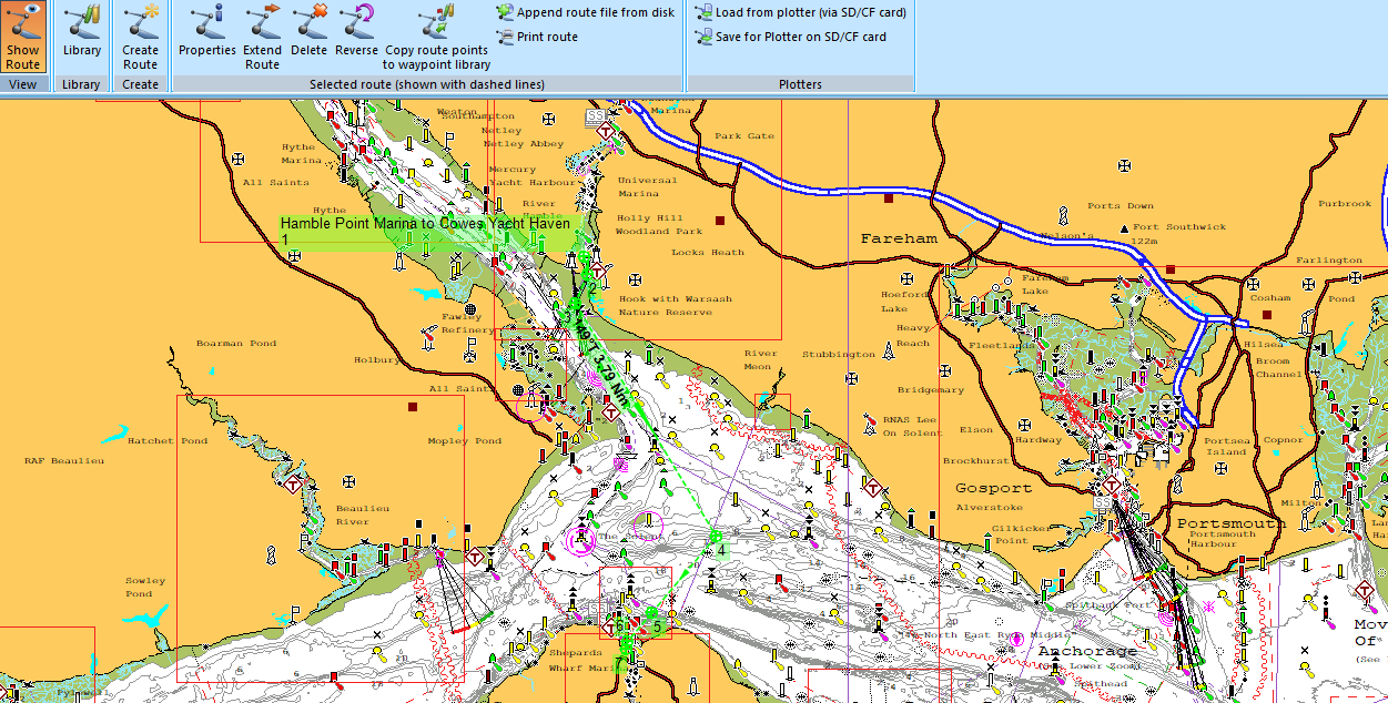Plan with your PC at home, on board or in the office, transfer routes and waypoints to your chart plotter.
